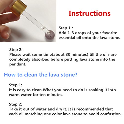 VERY EASY TO USE: Put 1-3 drops of your favorite essential oils onto the lava rock and put it in the locket pendant. The pendant opens like a locket, specially designed to hold the lava stone.