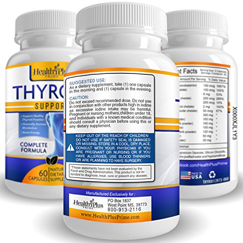-. Feature : Our thyroid supplement helps increase energy levels & concentration / Contains L-tyrosine which is an amino acid that is vital to maintaining a healthy mood / Contains an all natural blend of vitamins, minerals, herbs and amino acids / Has not been manufactured with wheat, gluten, soy, milk, egg, fish, or tree nut ingredients / If you're not happy with your purchase of our Thyroid Support, we will happily refund your money