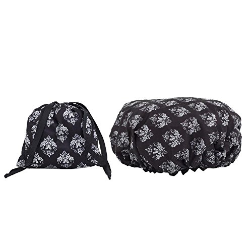 -. Title : New Dilly's Collections - 2 layered PVC Waterproof SHOWER CAPS - Hand Washable - Universal Fit - Reusable - Lightweight - Matching Satin Bag- Protects Hair in The Shower