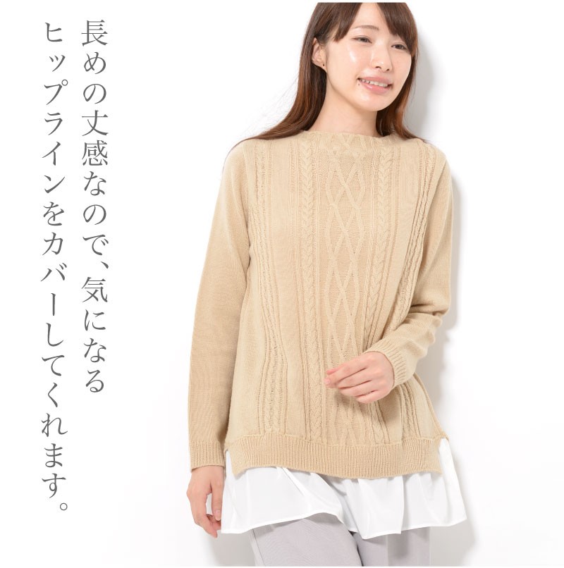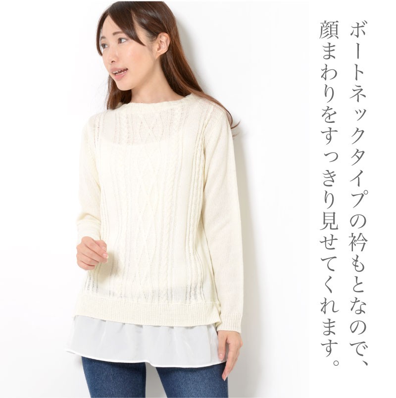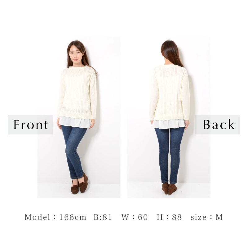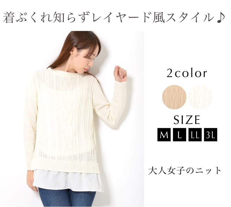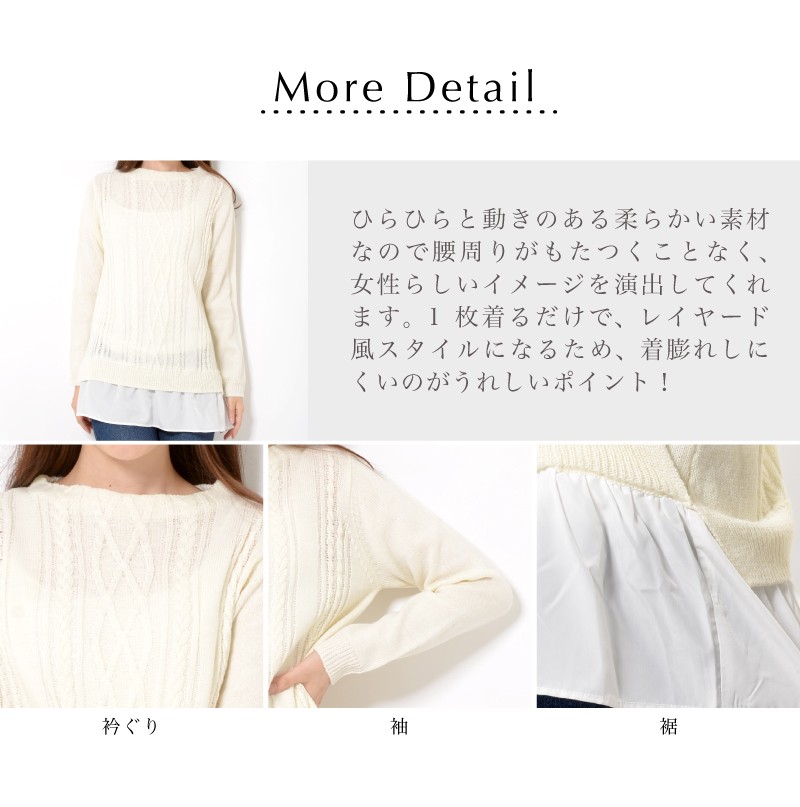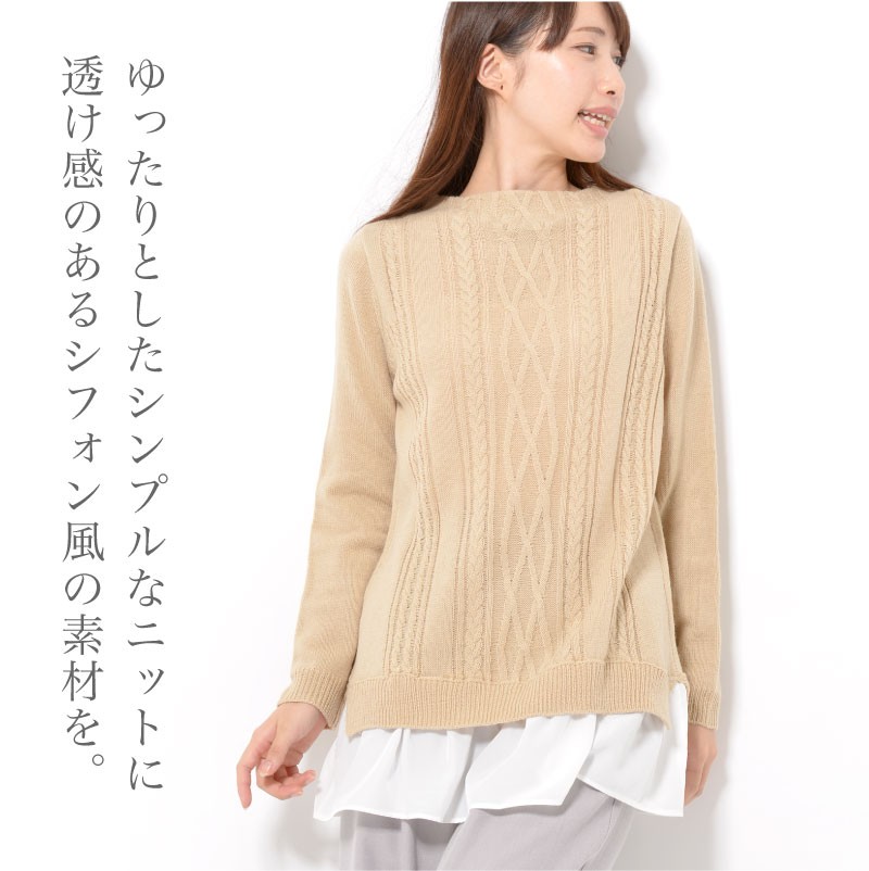 ゆったりとしたシンプルなニットに透け感のあるシフォン風の素材をドッキング。