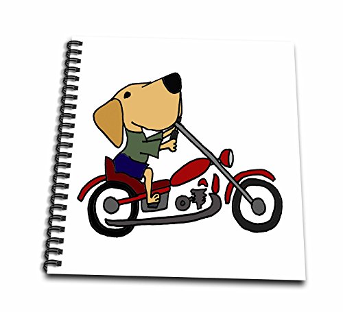 3dRose db_201826_1 Fun Yellow Labrador Retriever Dog Riding Red Motorcycle Drawing Book, 8" x 8"