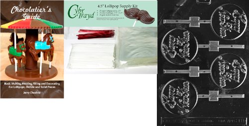 Cybrtrayd Happy New Year Lolly Chocolate Mold with Chocolatier's Bundle of 25 Lollipop Sticks, 25 Cello Bags, 25 Red Twist Ties and Chocolatier's Guide