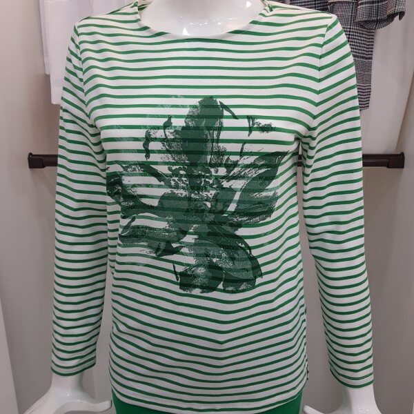 앞판 프린트로 포인트를 준 기본스트라이프 티셔츠