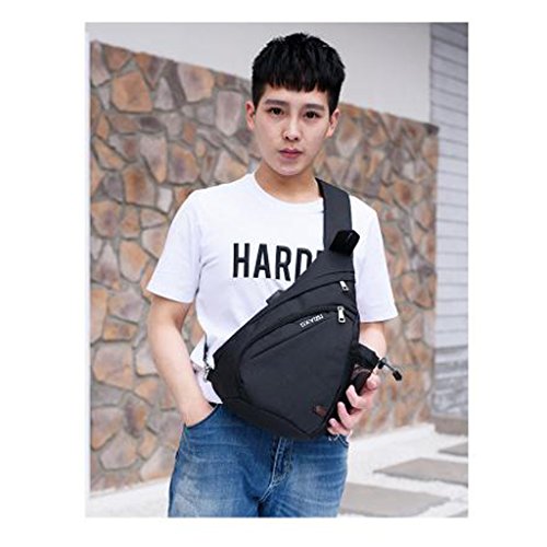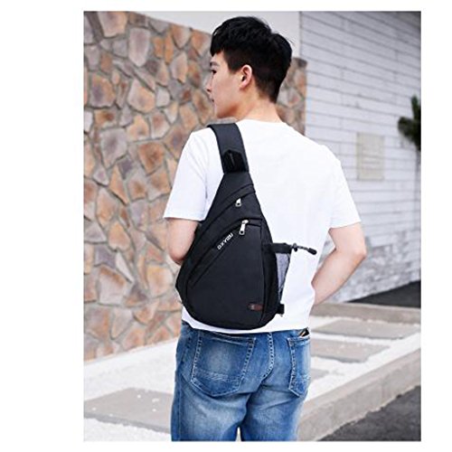 -. Feature : It's a great men women sling backpack for working, gym, traveling, biking, running, hiking, camping, school and everyday using / Exquisite external USB Interface design, give you full power anytime and anywhere with unique USB charging port / Made of water repellent polyester, light-weight ,Ultra-comfortable across your back and chest. / It can act as a single-shoulder bag/sling bag, or a cross-body bag for use / Two zippered main pockets, one side mesh pocket for water bottle,