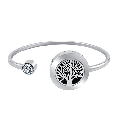 Tree of Life Essential Oil Diffuser Bracelet Stainless Steel Locket for Women(Tree of Life)