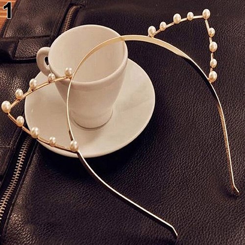 (Braceus)/Accessories/Hats/DIRECT FROM USA/Braceus Women Sexy Fashion Hair Band Cat Ears Faux Pearl Rhinestone Headband Headwear