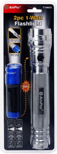 Ampro T19825 1-Watt Flashlight with Batteries, 2-Piece