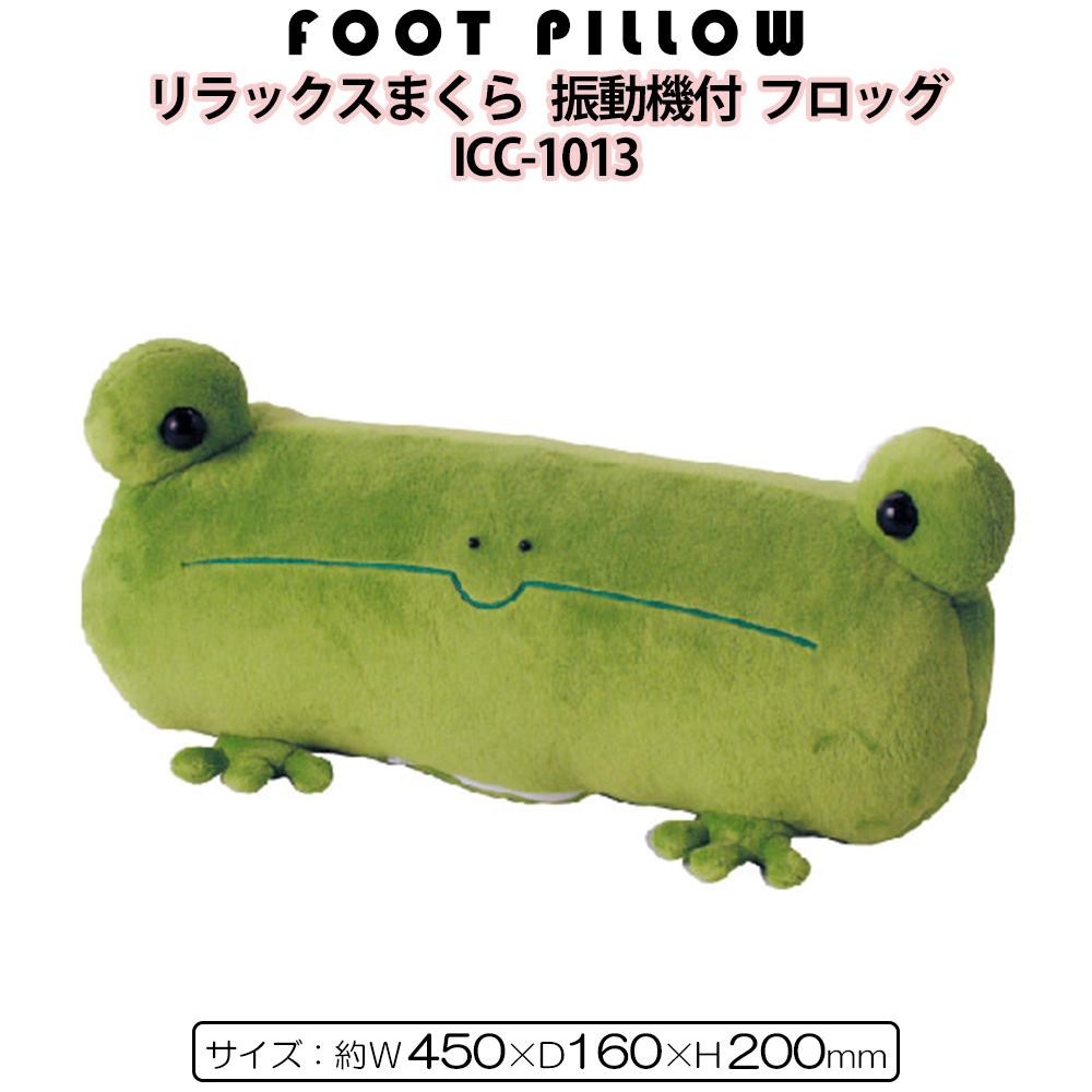 心地よい振動で、疲れた足をリフレッシュしてください。 製造国:中国 素材・材質:本体生地:ポリエステル本体中身:ポリエチレン(発泡ビーズ) 商品サイズ:約W450×D160×H200mm 仕様:電源:単三電池2本(別売) 付属品:取扱説明書 ※サプライヤー直送品 ※2018年10月12日入荷分予約受付中【商品名】インテリアカンパニー FOOT PILLOW リラックスまくら 振動機付 フロッグ ICC-1013