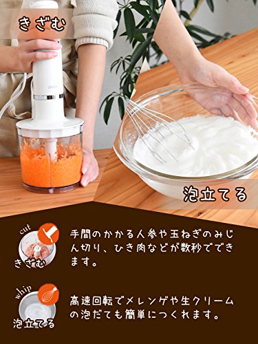 식재료를「혼합한다」「으깬다」가 간단하게 할 수 있는 사람기의 핸드블랜더에 쵸파(chopper)와《호잇파》가 더해진 만능 핸드블랜더.야채의 채 썲이나 살짝 한 생크림도 만들 수 있게 되고, 폭넓은 요리에 대응에서 옵니다.수고가 걸리는 작업을 간단하게 할 수 있는뿐만 아니라,시간의 단축으로도 되기 때문에 매일의 요리도 편안히.이유식을(으로) 만드는 엄마나 선물로도 추천입니다.