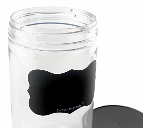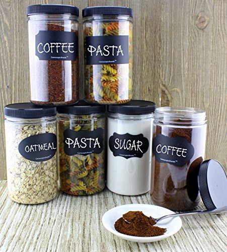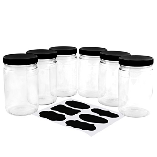 32 ounce / one quart plastic jars with black ribbed plastic lids (6 pack) plus six chalk labels to mark your products with ease