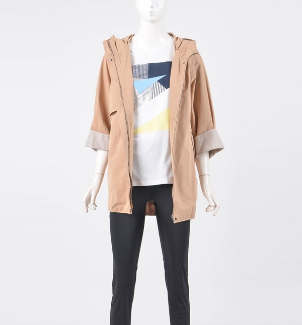 The Izzat, 배색이 어우러진 턴업 소매라인과 케이프 절개라인이 포멀하고 시크한 멋을 자아내는 점퍼입니다