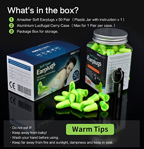 The Best Investment to Protect Your Ears and Prevent Noise-Induced Hearing Loss! ? Blocks out noise,reducing 35dB.so you get a good night's sleep. Sleep is essential to mental health and a good nights rest. ? 45 seconds slowly rebound, Soft and comfortable! Release the burden of the ear canal. ? 50 pairs comes in a jar, please replace a new pair after every 15 days. ? Customer will get a Portable carry case for free. An anti-stick interior guarantees earplugs will always be easily removable. Waterproof rubber seal ensures their protection from moisture, dust and debris. ? Perfect for sleeping, construction, concerts, hunting, shooting, snoring, and general hearing protection from all types of loud activity. ? Fair-price product: Less than $0.3 per pair. (50 pairs can last 2 year even if everyday use.)