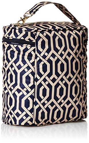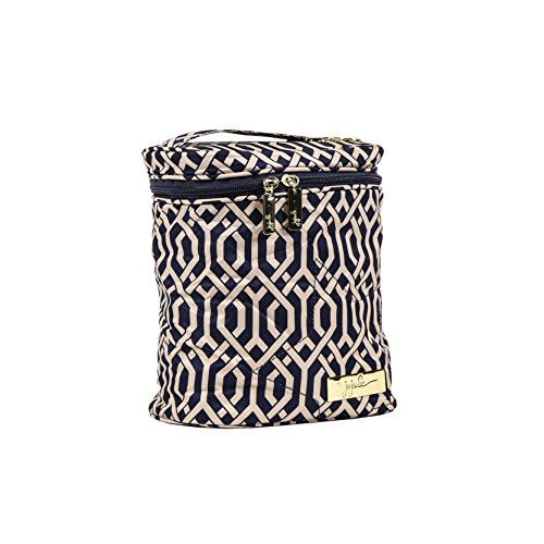 The Ju-Ju-Be Legacy Nautical Collection Fuel Cell Insulated Bag carries all your feeding essentials for you and your child while on the go. Fill 'er up! This great looking bottle bag/lunch pail fits a lot. Put in (3) tall bottles with room to spare. Use it for your own lunch and put in a water bottle or two - just don't squish your peanut butter sandwich! The 3M Thinsulate lining keeps things cool (or toasty) for snack time. No one will be running on empty when you keep this great accessory filled up. Oh! Almost forgot' it's machine washable! The inner lining of the Fuel Cell is protected with an Agion natural antimicrobial treatment that inhibits and reduces the growth of odor-causing bacteria, mold and mildew. The outer fabric is treated with Teflon fabric protector, making it easy to repel stains and keep the Fuel Cell clean. This cooler comes with an interior clear, zippered pocket to store napkins, spoons or an ice pack. A quick grab handle with swivel clip allows you to hook the Fuel Cell onto your diaper bag or stroller. This bag measures 7-inches by 9-inches by 4.25-inches in size. The Navigator print is tan liner design on a navy background with tan lining. The print is accented by gold, metal hardware. All Ju-Ju-Be Bags come with a Lifetime Limited Warranty against manufacturing defects when purchased from an Authorized Ju-Ju-Be Dealer. Authorized Dealers can be found in the images. Founded in 2005, Ju-Ju-Be is a Southern California company that uses science, style, and attitude to create diaper bags, purses and other fashionable accessories. Ju-Ju-Be assimilated the most advanced technology possible to create a stylish and intelligent product line that's unrivaled in the industry.Feature