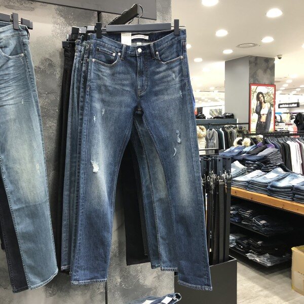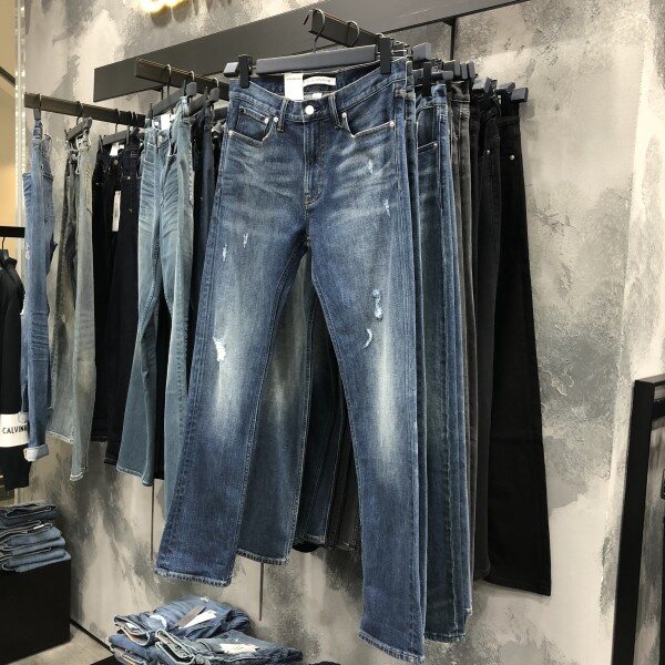 다리가 길고 핏감이 좋은. 슬림스타일. 워싱 청바지