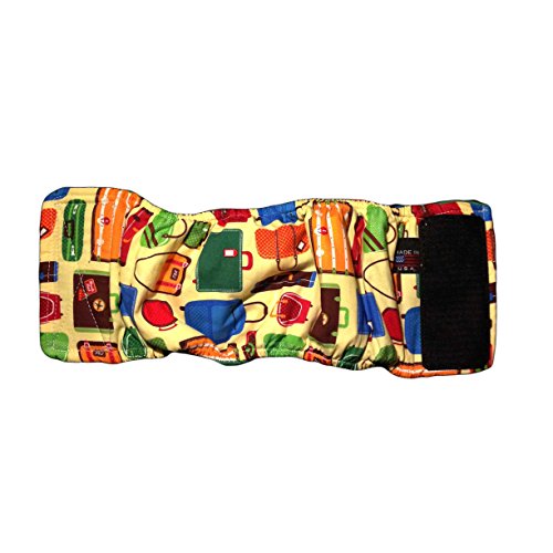 Use Barkerwear's washable belly band to keep your male dog from marking around the house. It is designed to help with housebreaking and/or incontinence problems (in older male dogs). Just wrap the belly band around your dog's genitals and over his back. The belly band is secured with a hook-and-loop strip and has soft-gathered elasticized edges to ensure a great and customized fit. It can be used alone or with Barkerwear reusable diaper liners for extra protection. Belly bands help inhibit peeing, and are not intended to absorb pee. It is made with super-soft lining on the inside and high-quality polycotton fabric on the outside. Between the outer shell and the lining, there are an extra layer of super absorbent Zorb pad and a waterproof moisture barrier that are completely sewn on for maximum leakage protection. You won't find another belly band with this kind of quality on the market for your furbaby! Material: Polyester cotton, soft lining, absorbent Zorb pad, waterproof underpad. Designed and handmade in Huntington Beach, California USA. Barkerwear Sizing Guide For Belly Bands: