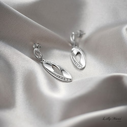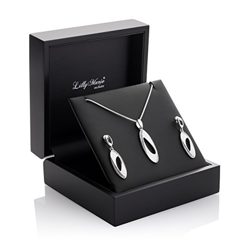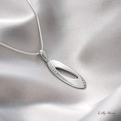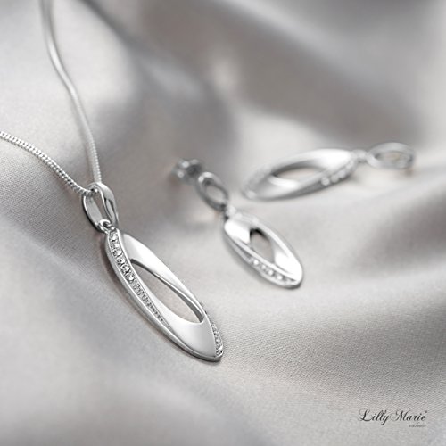 LillyMarie Damen Silber-Schmuckset echt Silber Anhanger oval original Swarovski Elements langen-verstellbar hochwertige Geschenkbox aus Holz, besondere Geschenke fur Frauen