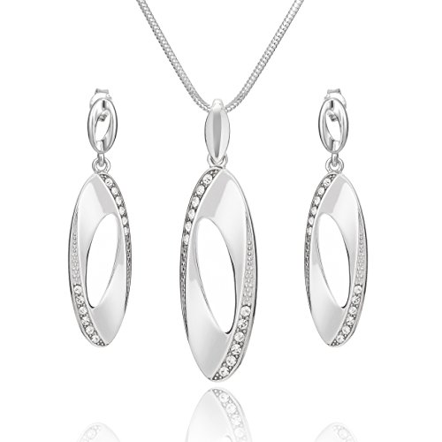 ANHANGER: Massiver Silberanhanger aus Silber 925 mit Kristallen aus der Swarovski Elements Kollektion. Wunderbar angepasst an die glanzvolle Kette. Anhangergrosse ohne Schlaufe: 30mm x 12mm. OHRRINGE: Ohrringe aus Sterlingsilber mit 925-Echtheitsstempel. Original Swarovski Elements Ohrringe oval. GROSSE: 37mm x 10mm. VERSCHLUSSTYP: Stecker.