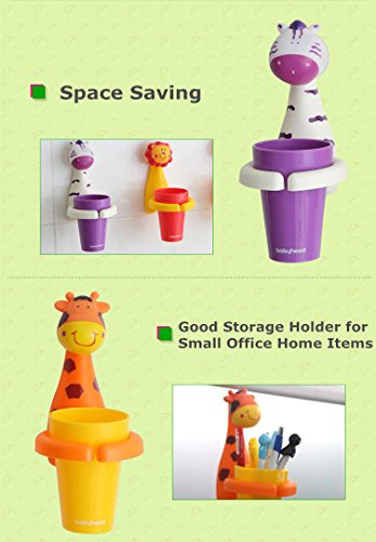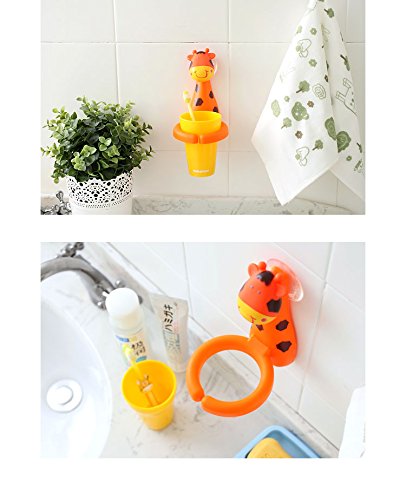 Animal Cartoon Children Toothbrush Holder Suit, Creative Candy Color Wall Suction Hanging Mouthwash Cup Food-Grade Material (Giraffe)