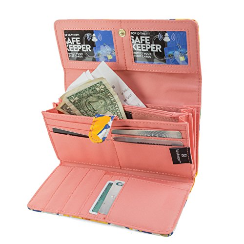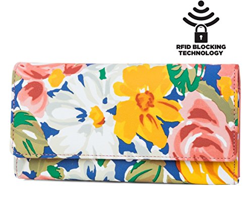 RFID BLOCKING TECHNOLOGY: Every Mundi RFID blocking clutch wallet is manufactured with RFID blocking technology. Now you don't need to worry about thief's steeling your credit cards, debit cards or driver's license information. Wireless identity theft, also known as contactless identity theft or RFID identity theft is a growing concern as more cards are enabled with RF-enabled technology. Be sure you are protected from these criminals and thieves with our RFID wallets for women. Our RFID Blocking wallet with checkbook storage will secure your Identity and personal information from RFID scanning devices, skimming devices and electric pickpockets.