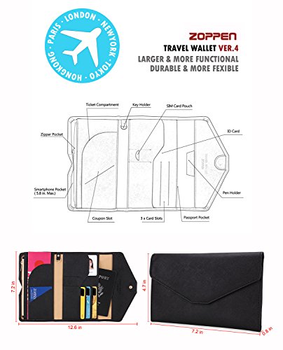 -. Brand : Zoppen -. Department : unisex-adult -. Feature : Travel Protection, Keep Identification Thief away from you and protect your personal information with inside rfid blocking shield material under frequence 13.56MHZ / Travel Organize, Roomy and Collected, 1 passport pocket (max fit 2-3 passports), 3 credit cards slot, 1 id slot, 1 sim card pouch, 1 ticket slot, 1 coupon compartment, 1 cellphone pouch (max 5.8 inches), 1 money & coins zippered pocket (fit U.S. money), 1 key holder and 1 pen holder / Travel Smart, Store your carry-on essentials in one slim and lightweight bag and never miss or lost them if you really needed / Travel Classical, Vintage looking, Chic style, Multi-functional design, Soft and Comfort touching, various refine colors to match your taste / Save up to 50%, Use the Coupon codes below when you purchasing ANY 2, 3 or 4 items of Zoppen Travel Organizer Gear -. Model : Zoppen Slimlight Packing -. ProductGroup : Apparel -. ProductTypeName : LAGE -. Title : Zoppen Multi-purpose Rfid Blocking Passport Wallet (Ver.4) Organizer Holder