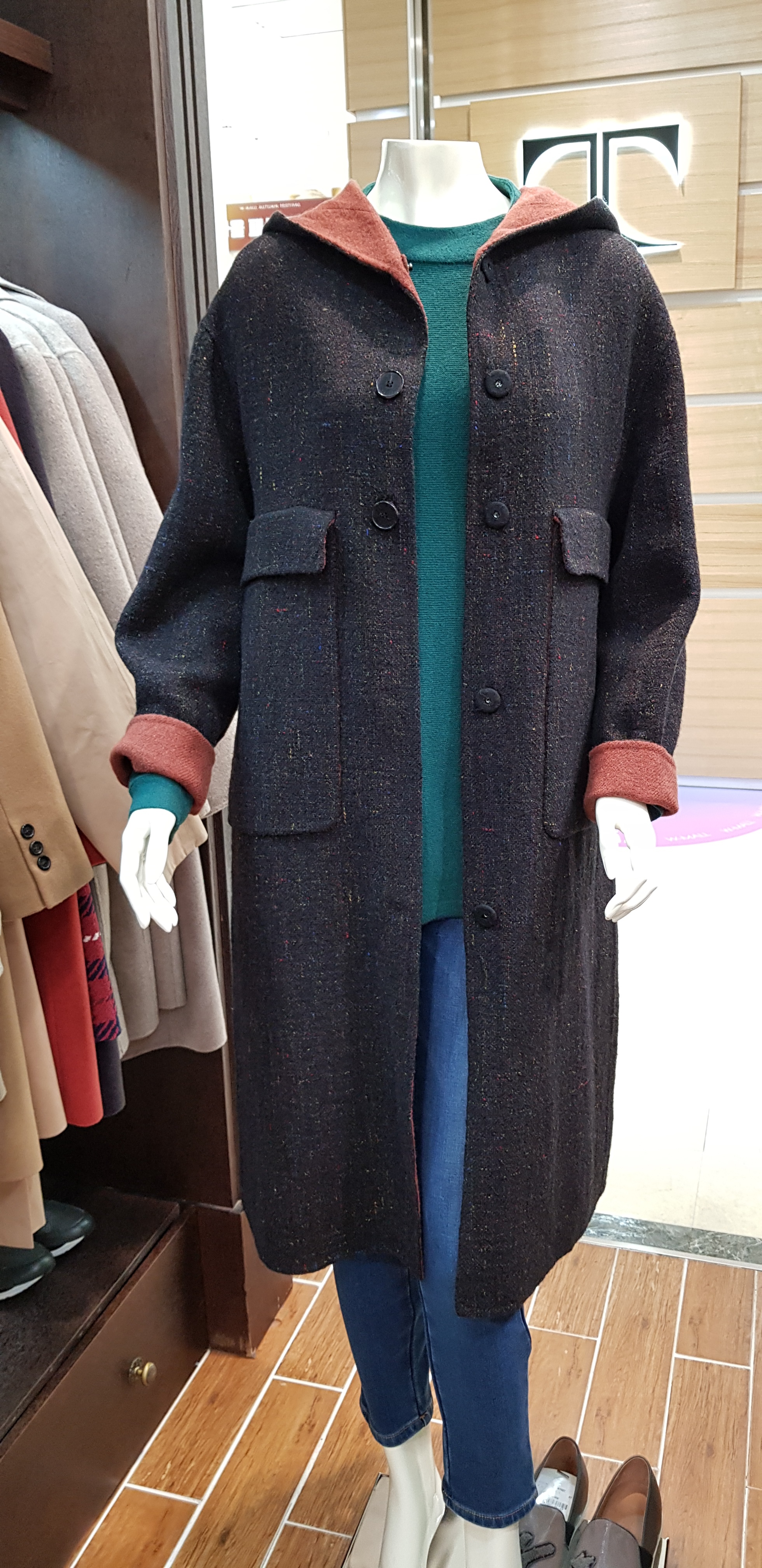 키이스~오버핏의 롱코트입니다 드롭어깨와 박시한핏이 멋스럽고 아웃포켓의 경쾌함과 캐주얼함이 예쁜 아이템입니다 사이즈는 하나작게 착용하셔도 좋은 코트입니다 총장107센티입니다