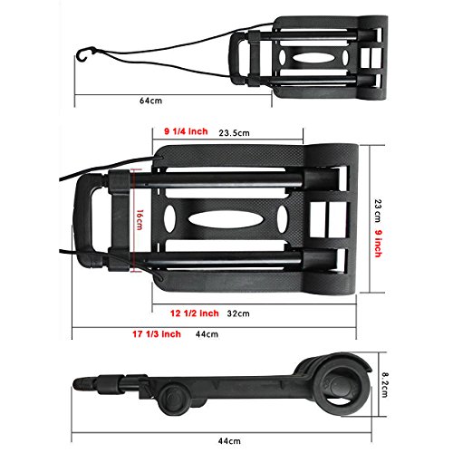 -. Brand : BlueCosto -. Color : Black -. Department : unisex-adult -. EAN : 0747180080971 -. Feature : Good design portable folding lage cart, folds up for easy storage. You can find the size of cart on the picture 3. Considering of portable ability important, we have to give up a little practicability for big suitcase or bag. / Compact and lightweight. Easy maneuverability for opening and closing / Hold up to 77 lbs. Main part meterial: plastic. Item weight about 3 lbs, lightweight and portable cart. / Durable wheels for improved handling. Sturdy bungee cord to secure lage in place. / Suitable for supermarket shopping, travel, airport, station, also suitable for students backpack. -. NumberOfItems : 1 -. ProductGroup : Apparel -. ProductTypeName : LAGE -. Title : BlueCosto Lightweight Portable Folding Lage Carts Travel Trolley -. UPC : 747180080971