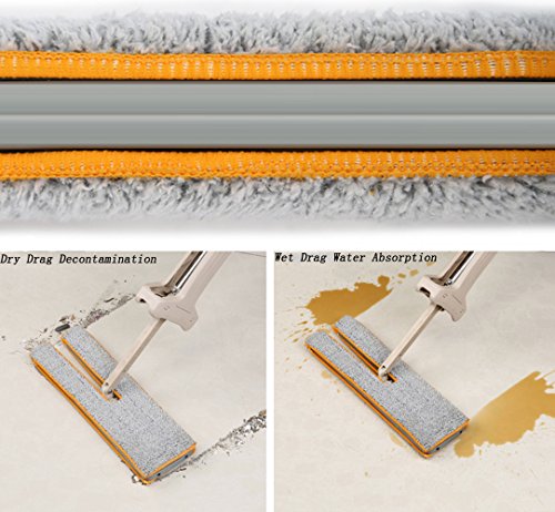 - STAINLESS STEEL SHAFT:the force parts more reliable and flexible,longer rod design easy to clean the corner.Mop head using ultra-fine fiber by the high-tech manufacturing,durable and will not fall hair,particularly have a strong water absorption.