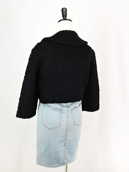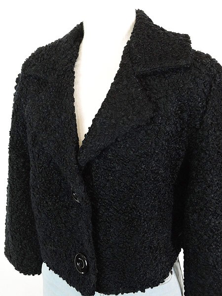 Ladies ブランド カラー黒 メール便不可 コンディション★★★ 素材ウール・アクリルだと思われます 表記サイズ記載なし 実寸サイズ 着丈 43 cm 身幅 48 cm 肩幅 40 cm 袖丈 43 cm ※ウエスト・ヒップ以外は平置き採寸【code】#b