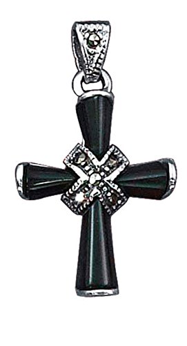 -. Title : Sterling Silver Girls .8mm Box Chain Black Onyx Christian Cross Pendant Necklace Marcasite Bands