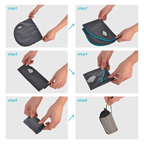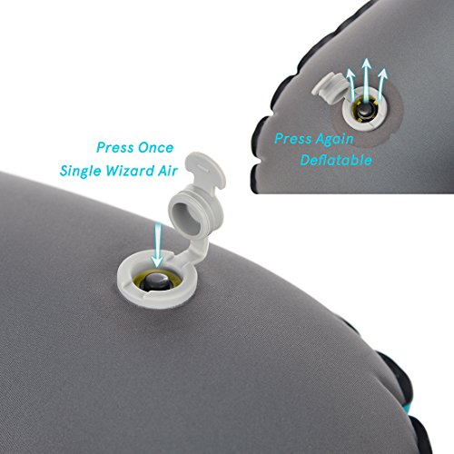 Real Easy to Inflate and Deflate: This inflatable pillow applies a new patented air valve, only press the button in center of air valve; you can achieve air inflation and deflate to pillow easily. No air out when inflating and deflate it faster than normal inflatable camping pillow. You can adjust the pillow firmness freely by blowing.