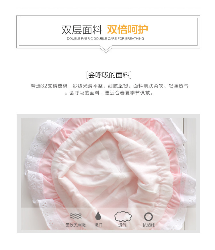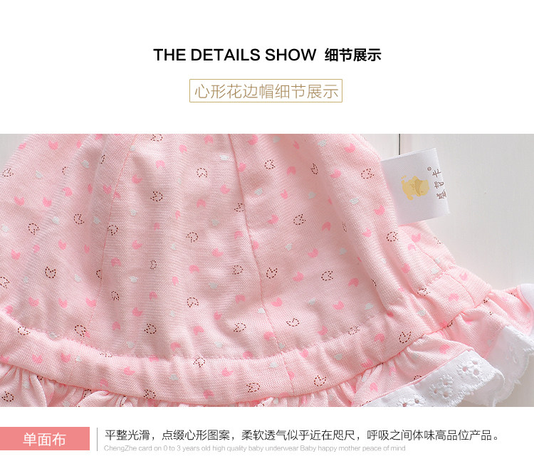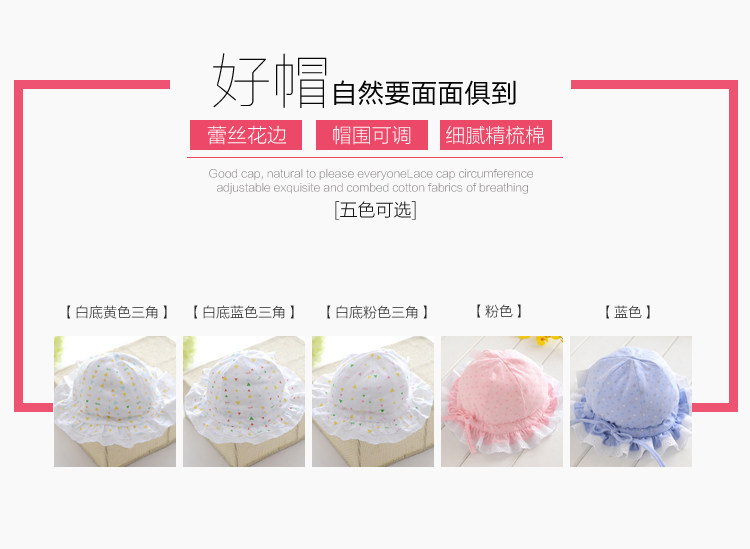 Note: The heart-shaped pink, blue lace cap hat at random, oh, they are cotton fabrics, reassure parents!