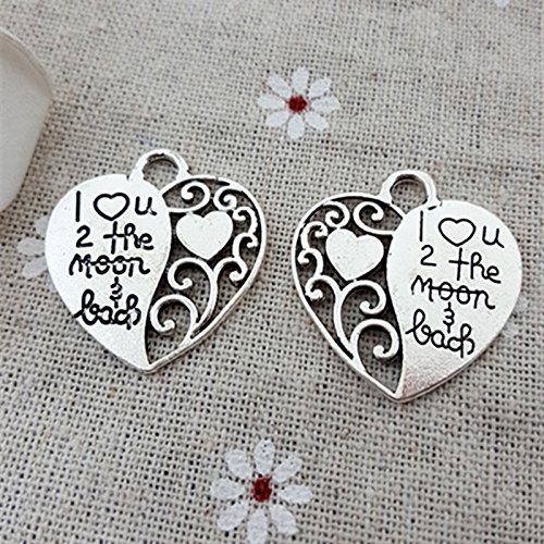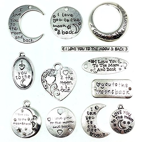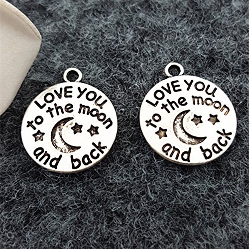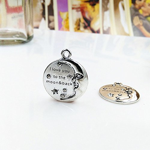 12PCSX2 (24PCS) Silver Tone "Love You to the Moon and Back" Charms Pendants Connectors, Jewelry DIY Supply Wholesale C12