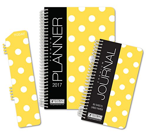 -. Title : HARDCOVER Fashion Daily Planner Set - Includes 14 Month 2017 Calendar Year (5.5" x 8") with Monthly Tabs -- Bonus Clip-in Bookmark -- 3.5" x 6.5" Bonus Journal [Yellow Dots]