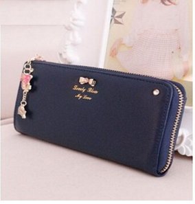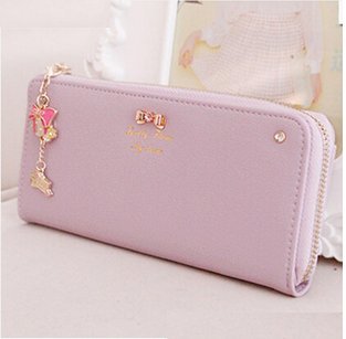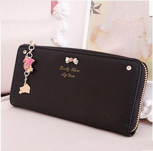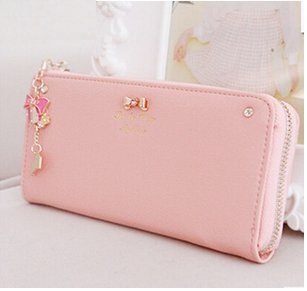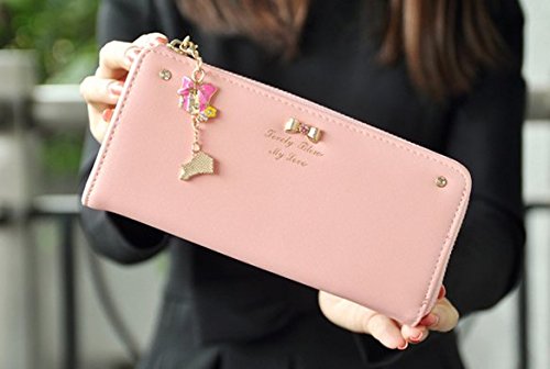 E-Youth Cute Lady Wallet Fashion Purse Casual Long Zipper Bag ,with a Cute Bow Pendant (Pink)