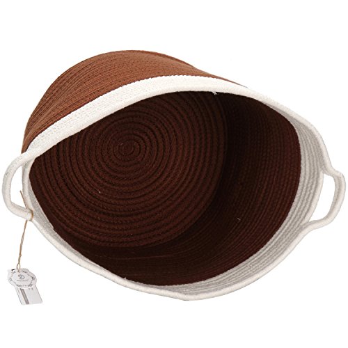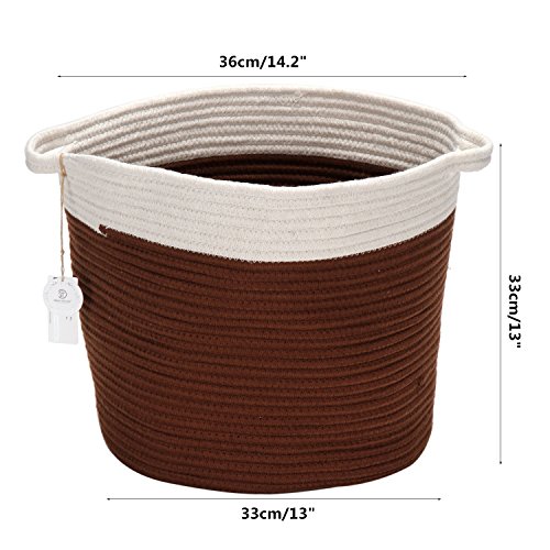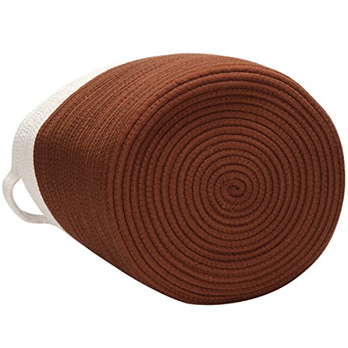 Sea Team 12.2"H x 11.8"D Bicolor Natural Cotton Thread Woven Rope Storage Basket Bin Hamper with Handles for Nursery Kid's Room Storage (Brown & Nature)