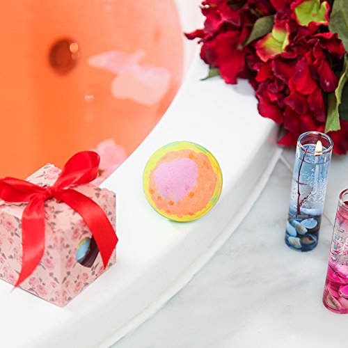 Bath Bombs Rainbow Color in Love Gift Box-Bubble Bath-Extra Large Ball(5.3Oz)-Handmade-Natural Essential Oils/Ultra Lush SPA Fizzies / Shea Coco Butter Moisturize Dry Skin,Relaxing,Aromatherapy Gift