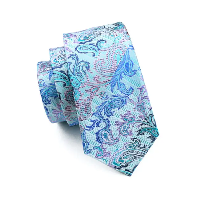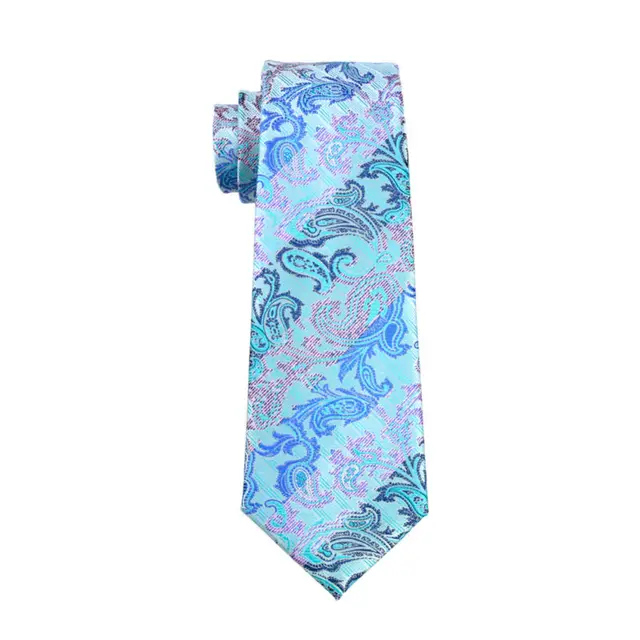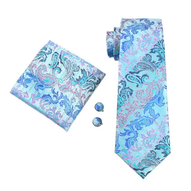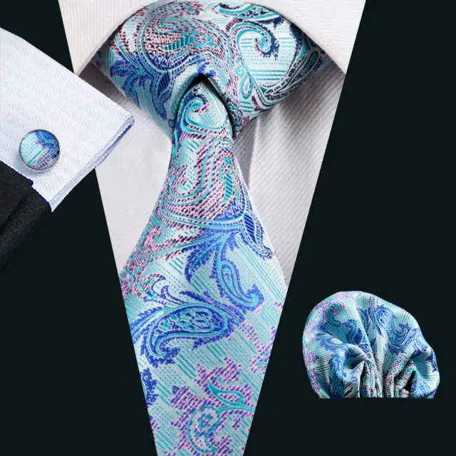 LS-405 넥타이 남자 블루 페이즐리 100% 실크 자카드 짠 넥타이 + 손수건 + 커프스 세트 남성 정장 웨딩 파티 무료 우표