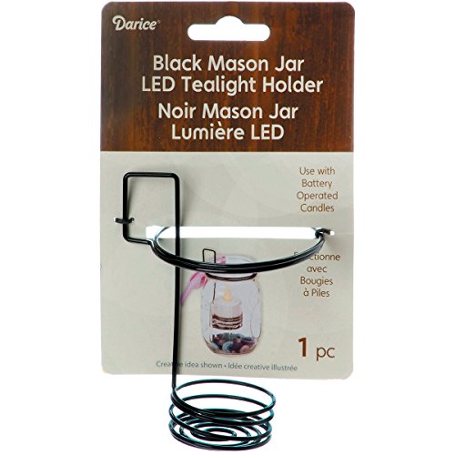 Darice Mason Jar Tealight Holder, 3 x 2.625 x 4.25 - Inch, Black