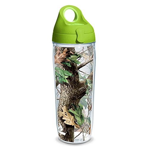 Tervis Realtree Camo Knockout Hardwoods Wrap Water Bottle with Lime green Wb Lid, 24oz, Clear