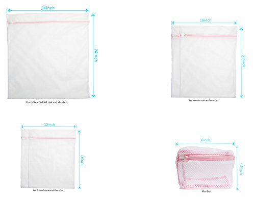 - Package included ---- Set of 6 laundry bags (1 Extra large: 24*24 inch; 2 X Large: 20*16 inch; 2 X Medium: 16*12 inch; 1 Bra Bag: 6*4.5 inch). An assortment of sizes and shapes to suit for all your clothes.