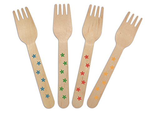 CaterEco 100-Piece Birchwood Compostable Forks, Flowers Print