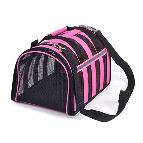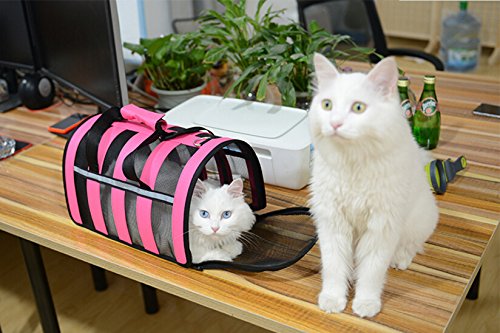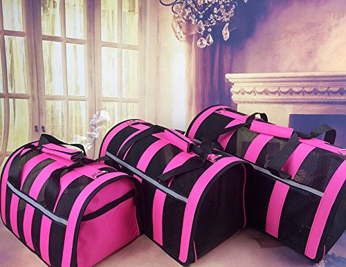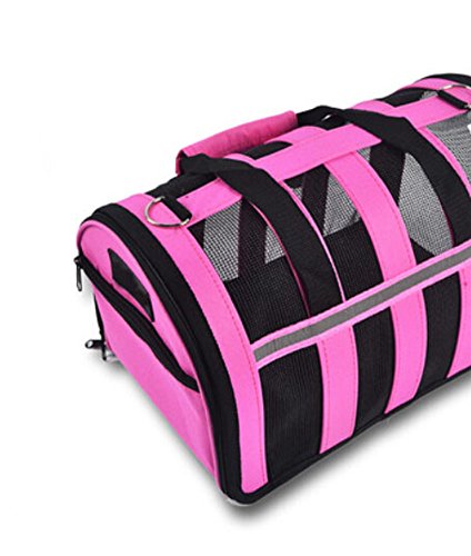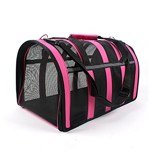 Description: Material:made of strong mesh cloth. breathable and durable. Dimension: S: 35*24*22 CM. /13.7*9.4*8.6 Inches.Product Weight: 550g. Suit pet weight below 4 kg/ 9 lb. M:40*26*26 CM./15.7*10.23*10.23 Inches.Product Weight:650g. Suit pet weight about 8kg/17.6 lb. L:48*28*28 CM. /18.9*11*11 Inches. Product Weight:930g. Suit pet weight about 12kg/25.6 lb Color: Blue/ Rose red/ Black/ Red. Package include: 1 X pet travel airline carrying bag. Feature: 1?Strong mesh cloth can keep the pet bag stay up .it doesn't collapse on the pet like a lot of other soft carriers 2. SEE THROUGH mesh cloth.The whole thing is mesh, you can look after your pet during the whole trip. 3. FOLDED DOWN designed. You can fold it and fit into a backpack. 4.STIFF BOTTOM.There is a hard insert in the bottom that is pretty stiff and durable. it doesn't bend when you carry your pet. 5.Ideal for your dog ,cat,rabbit ,guinea pig,hamster and any other pet weight below 25 lb. 6.EASY TO CLEAN. Clean it with a brush in the water. Air dry. Metal dual zippers.pet can stick its head out the front if zipped part of the way up. How to maintain: 1.fold it into flat. When you do not need it in a long time. 2.brush it inthe water and air dry. If you have any questions,please contact with us by email. 0
