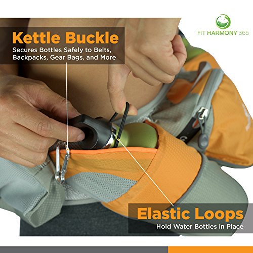 - MORE VERSATILE. The included water bottles feature hooks on their lids, allowing you to attach them to any gear bag for use without the belt.