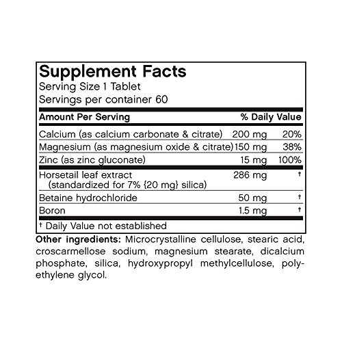 Studio : Futurebiotics Publisher : Futurebiotics Binding : Health and Beauty Product Description Super Silica ComplexTM is a vegetarian complex of silica from Horsetail leaf extract, minerals and select nutrients that nutritionally supports healthy bones, hair nails. Since our early beginning in 1984, Futurebiotics? has been committed to ?Creating a Healthier Future* by helping our customers lead healthier lives through better nutrition. After more than 30 years, that is still our commitment. This comprehensive and meticulous commitment to product integrity guarantees that you can be absolutely confident that when you choose a Futurebiotics? product for yourself and your family, you are choosing the very best nature, and Futurebiotics?, has to offer. 0