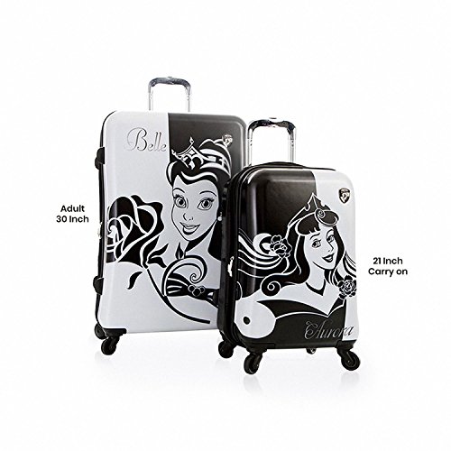 Heys International Classic Disney Princess Hard side Black/White Spinner Belle Aurora Luggage Set - 2 PCS. It's a reliable containers which hold a traveler's articles during transit. The Disney Princess Classic luggage set, touches on the magic of one of the most recognizable characters Disney has ever created. We took fresh new look at the spirit of Disney Princess's and interpreted this into this gorgeous and eye catching luggage set. As with all Heys luggage, the Princess Classic Spinners are incredibly lightweight, and feel even lighter when you roll them on their ultra-smooth Japanese made spinner wheels. The cases have a zippered opening system, and built-in TSA locks that are fixed to the body of the luggage. When opened, the Princess Spinners reveal their inner beauty with a specially lined interior and built-in divider with mesh pocket. Available in a 2 pc set. Features: - Brand Name: Heys International