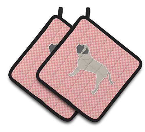 Caroline's Treasures English Mastiff Checkerboard Pink Pair of Pot Holders BB3656PTHD, 7.5HX7.5W, Multicolor