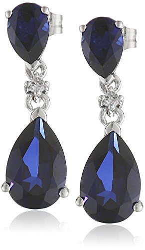 14k White Gold Created Pear-Shaped Sapphire and Diamond Accent Drop Earrings