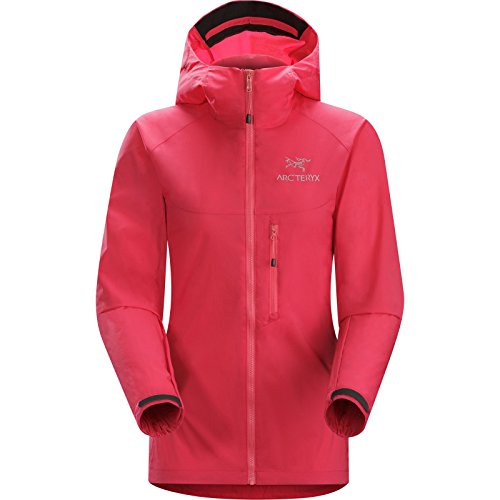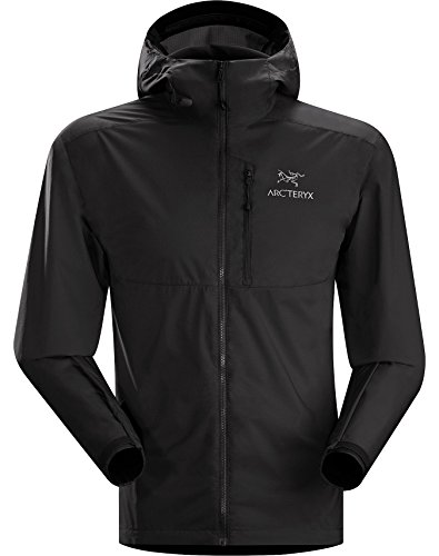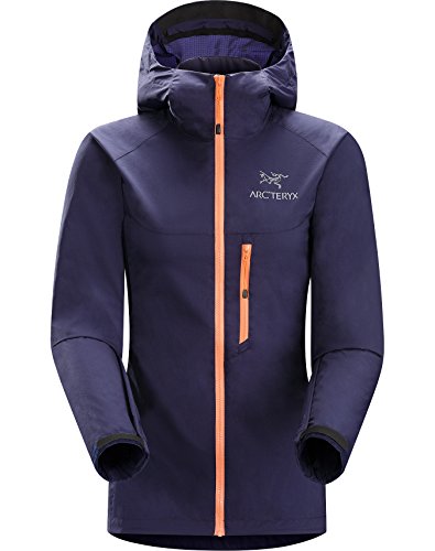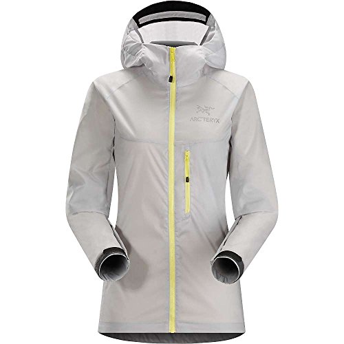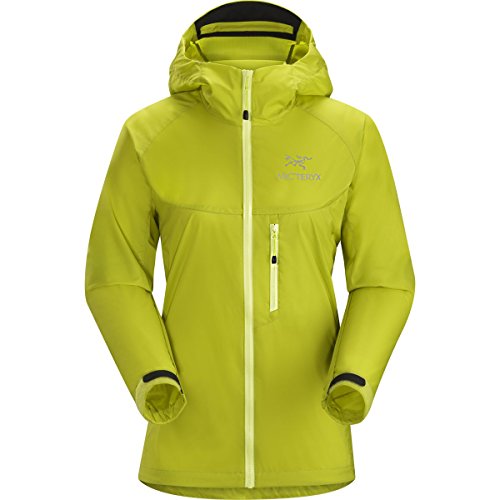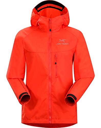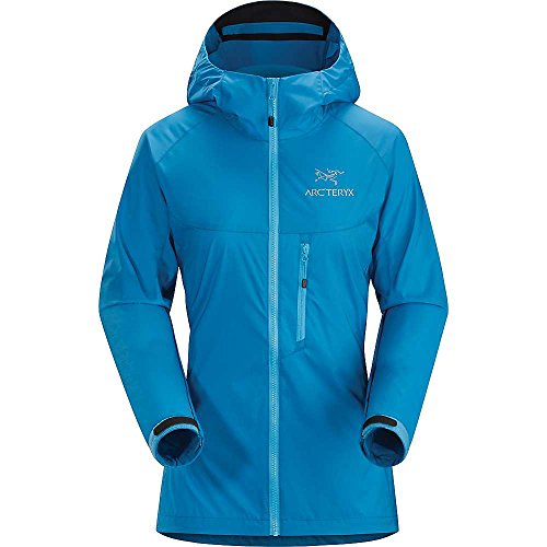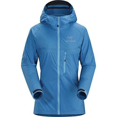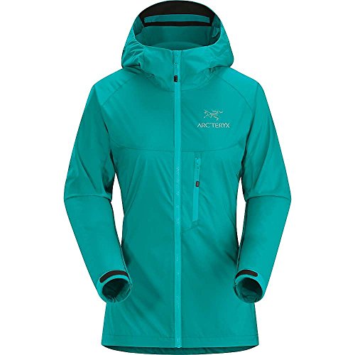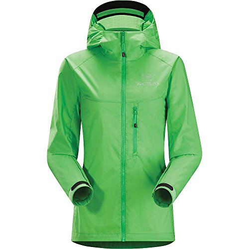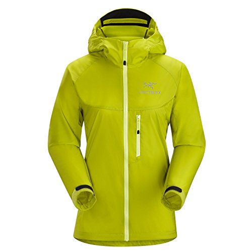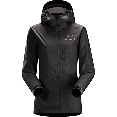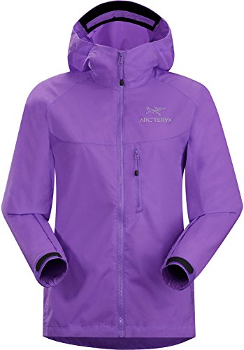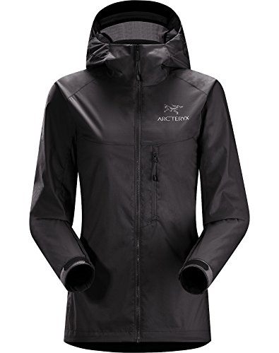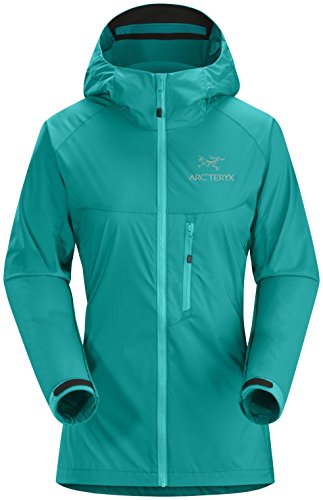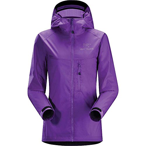 FEATURES of the Arcteryx Women's Squamish Hoody Lightweight, nylon ripstop textile with mechanical stretch that resists wind and has a DWR finish to repel moisture #3 Vislon front zipper with wind flap Low profile StormHood? designed to block the elements without inhibiting mobility or vision can be adjusted with one-handed drawcords Compressible and packable, stows away in it's own chest pocket Drop back hem can be adjusted Laminated die-cut Velcro? cuff adjusters reduce bulk, and won't catch or tear off Articulated elbows and gusseted underarms for added comfort and increased range of mobility Athletic fit utilizes anatomical shaping to enhance motion and eliminate excess bulkFeature