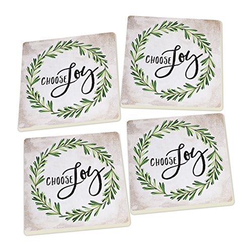 Choose Joy Laurel Wreath Script Design Set of 4 Ceramic Coaster Pack