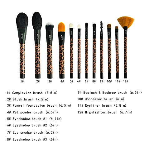 TZ COSMETIX - Professional 12 Pcs Eeyshadow Makeup Brush Set Kit Madagascar Leopard Colour